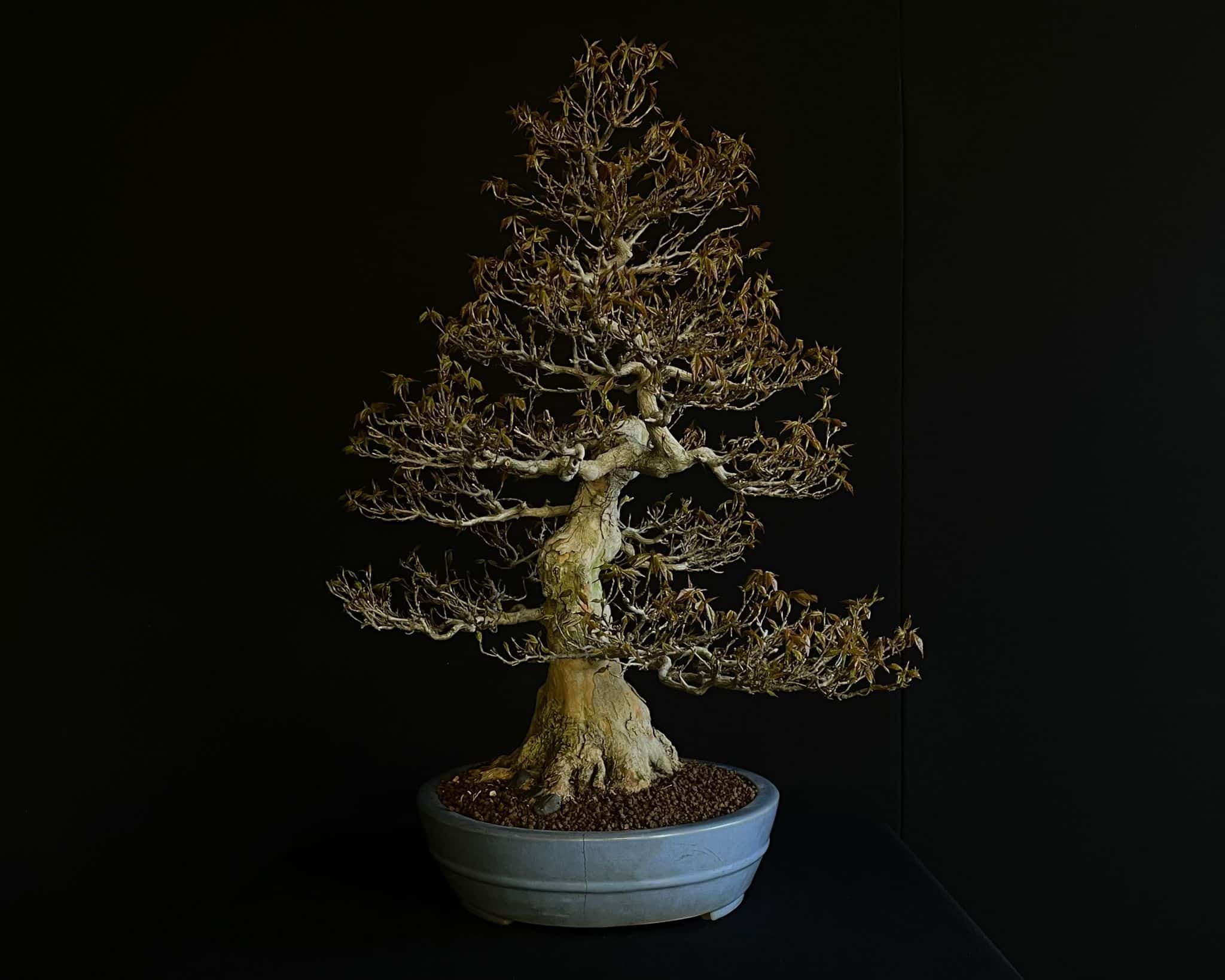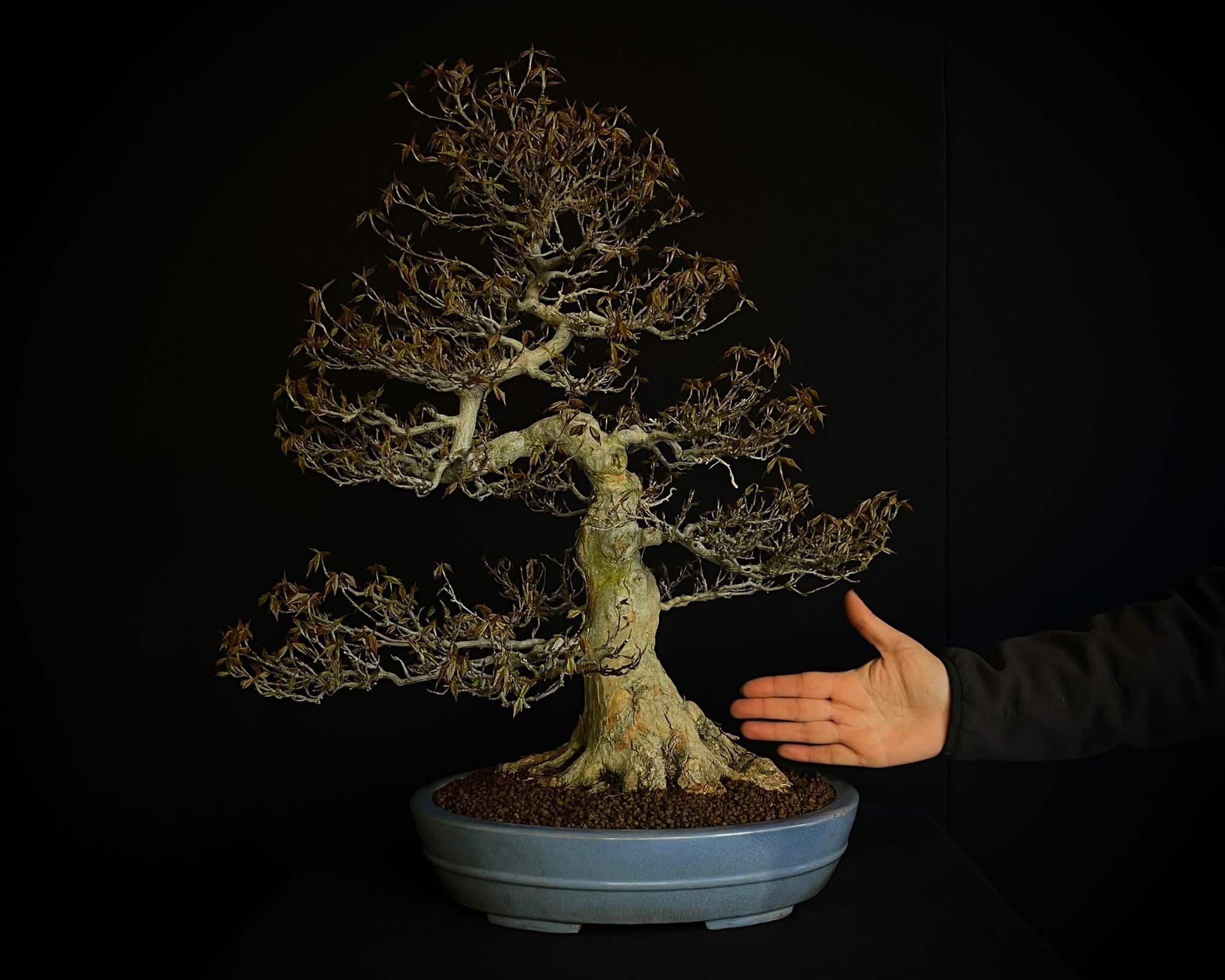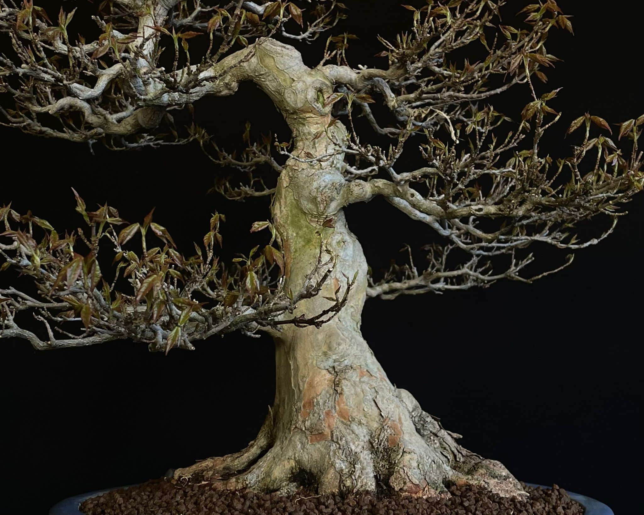 Un bonsái de hoja caduca que combina armonía, carácter y una silueta majestuosa. Su corteza texturizada y su espectacular cambio de color en otoño, pasando de verdes vibrantes a tonos rojizos y anaranjados.