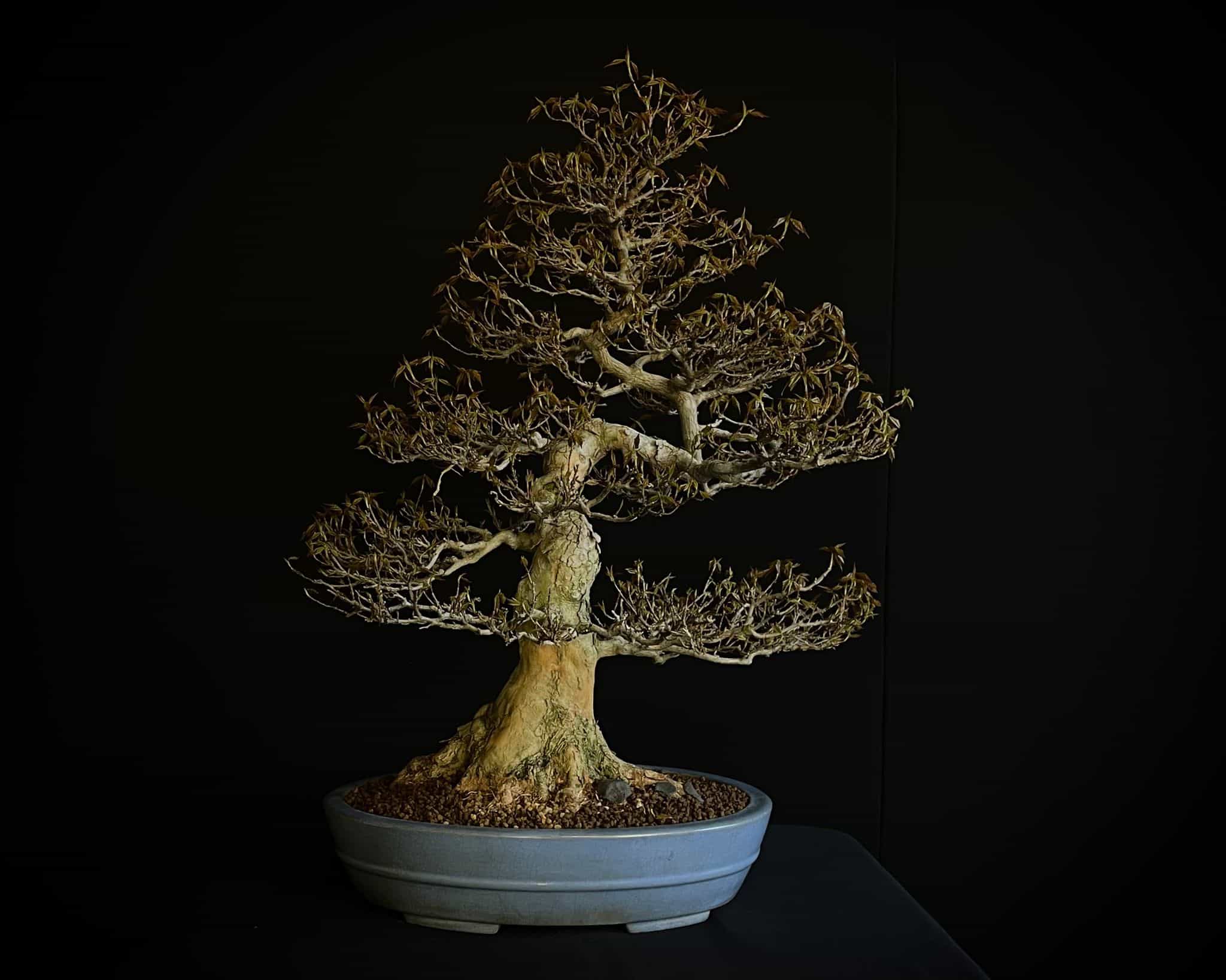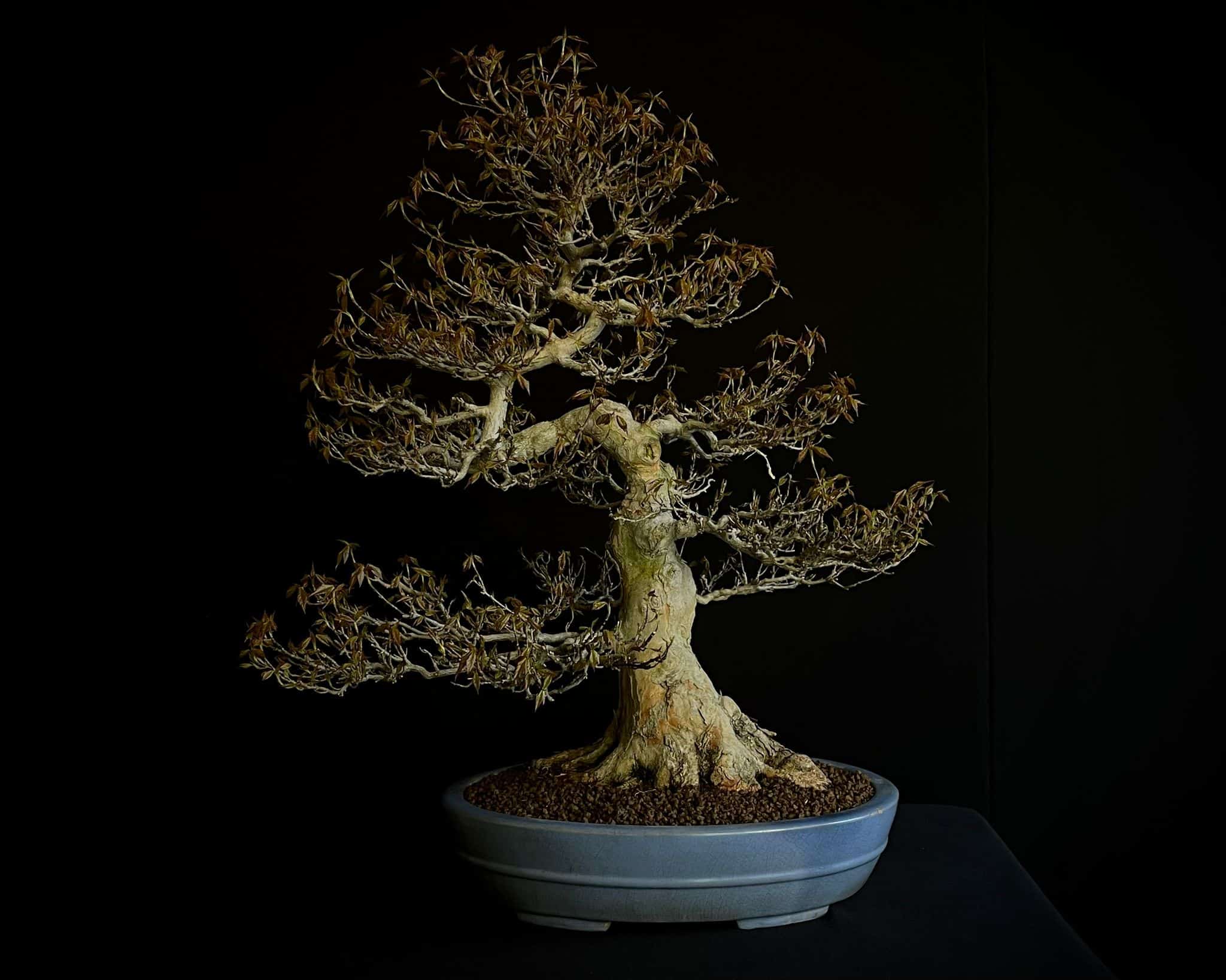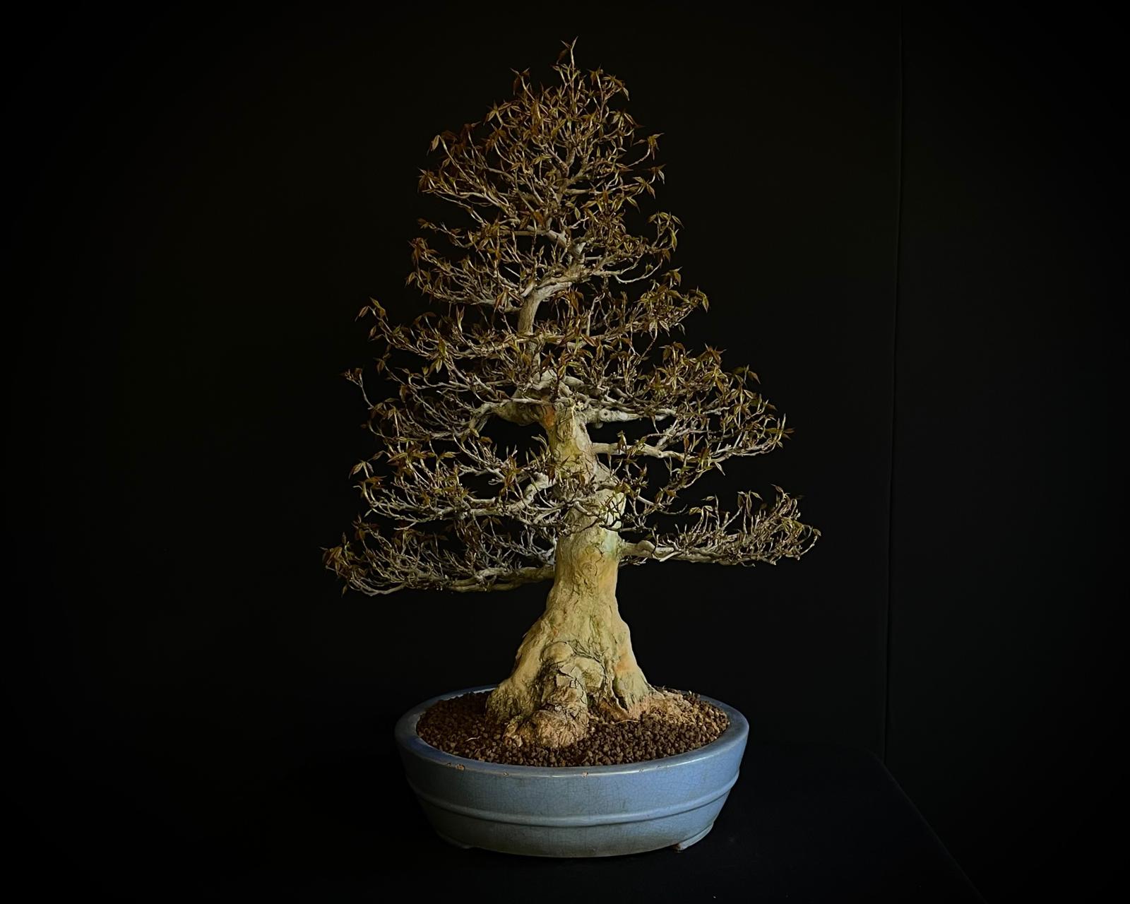 Un bonsái de hoja caduca que combina armonía, carácter y una silueta majestuosa. Su corteza texturizada y su espectacular cambio de color en otoño, pasando de verdes vibrantes a tonos rojizos y anaranjados.