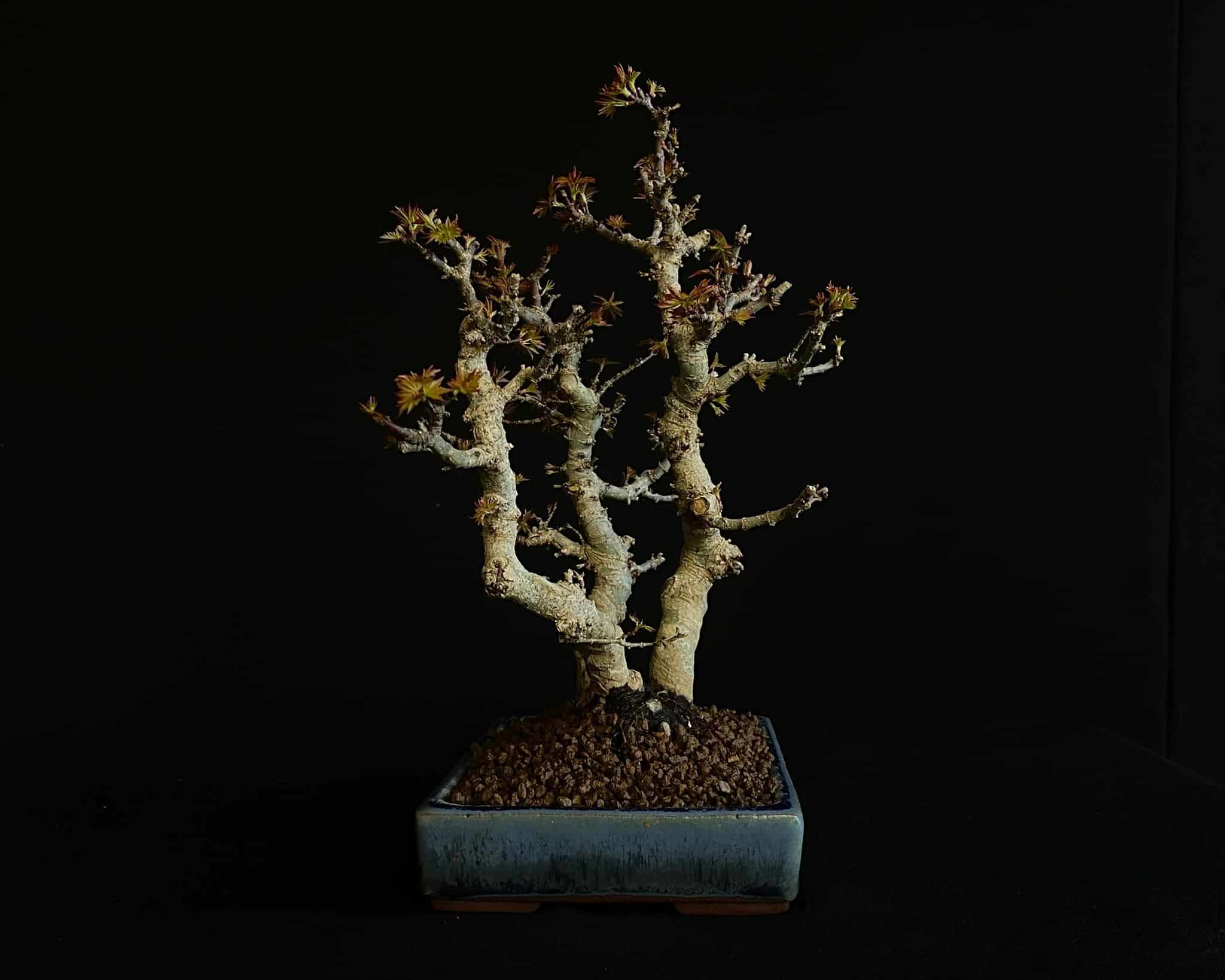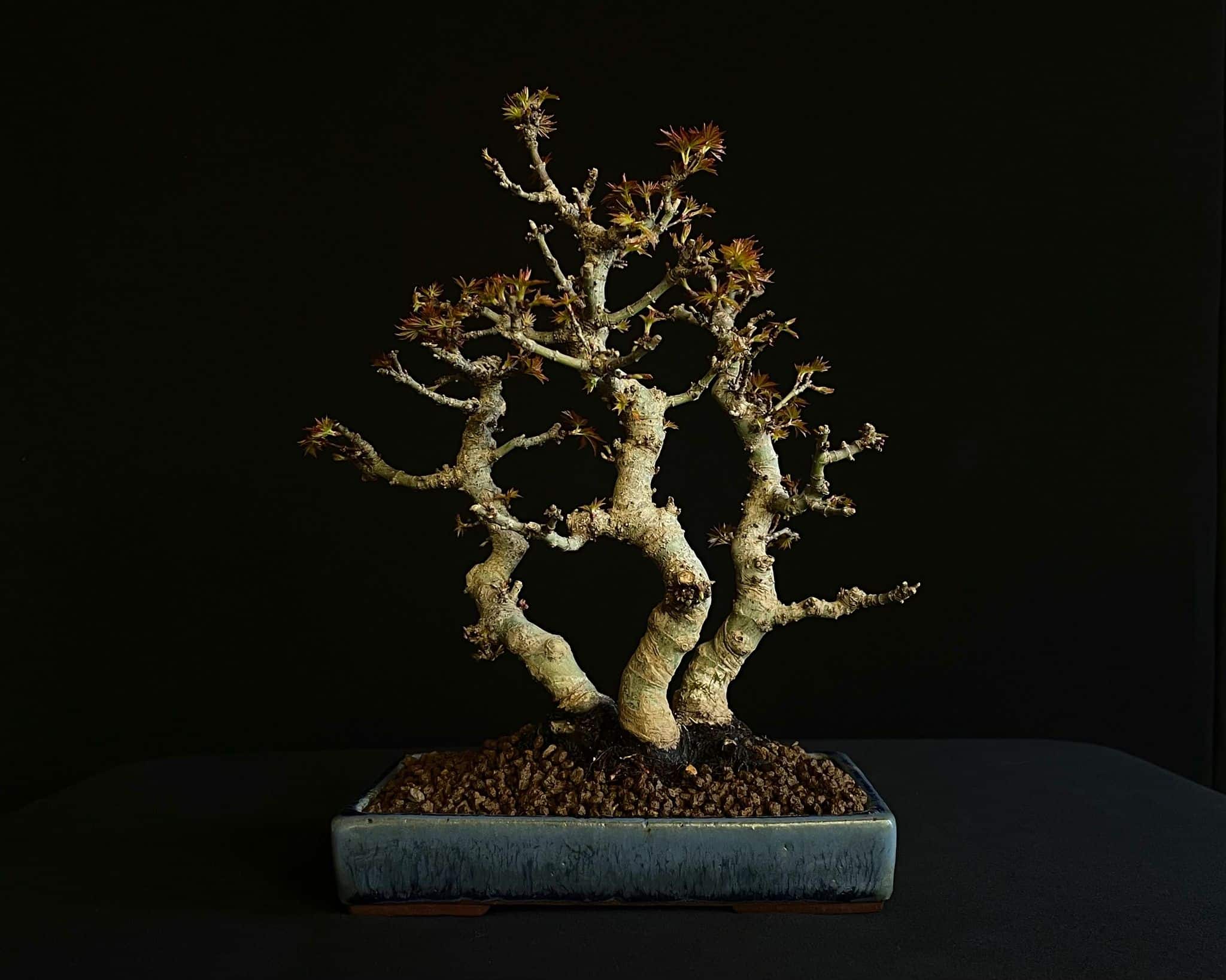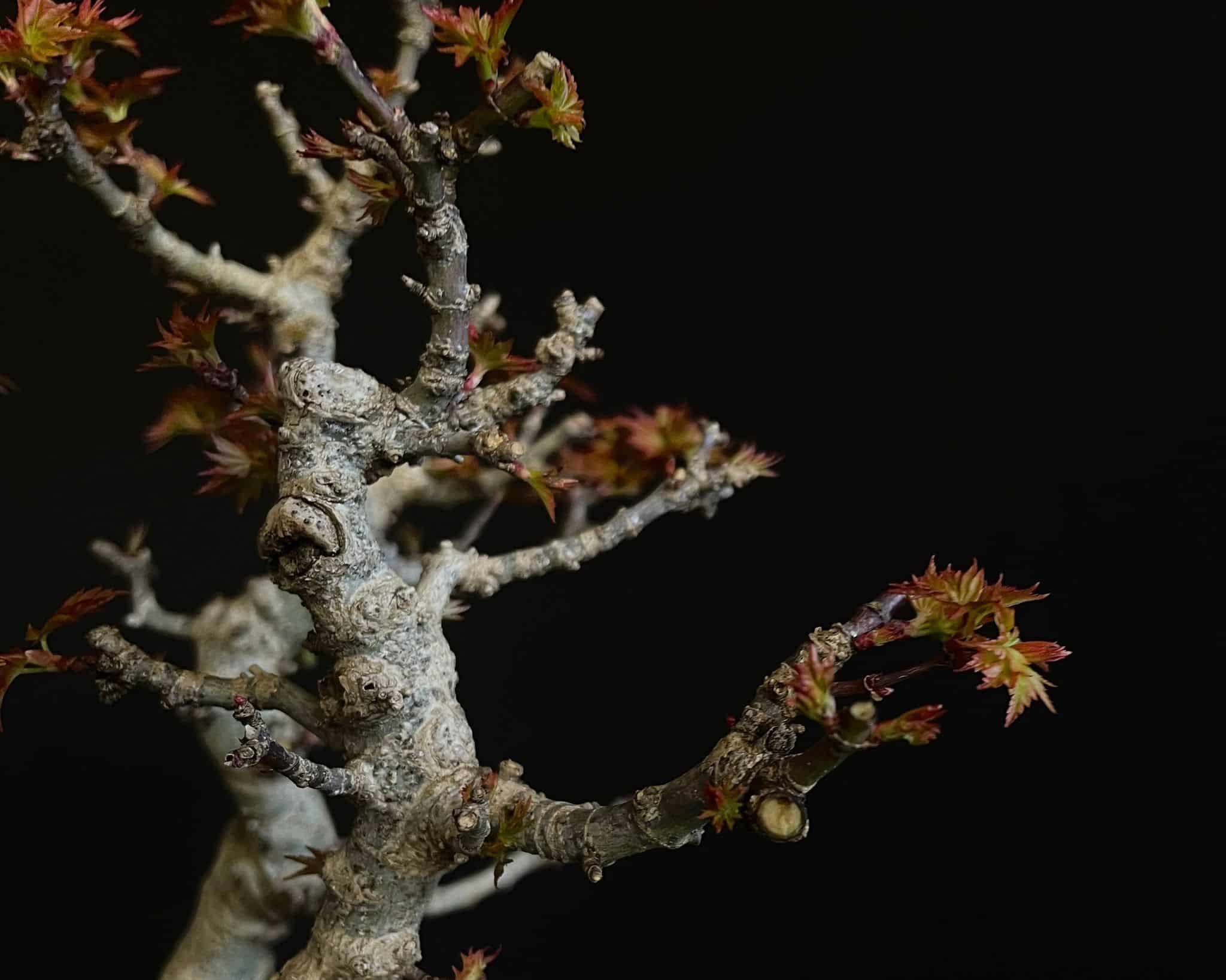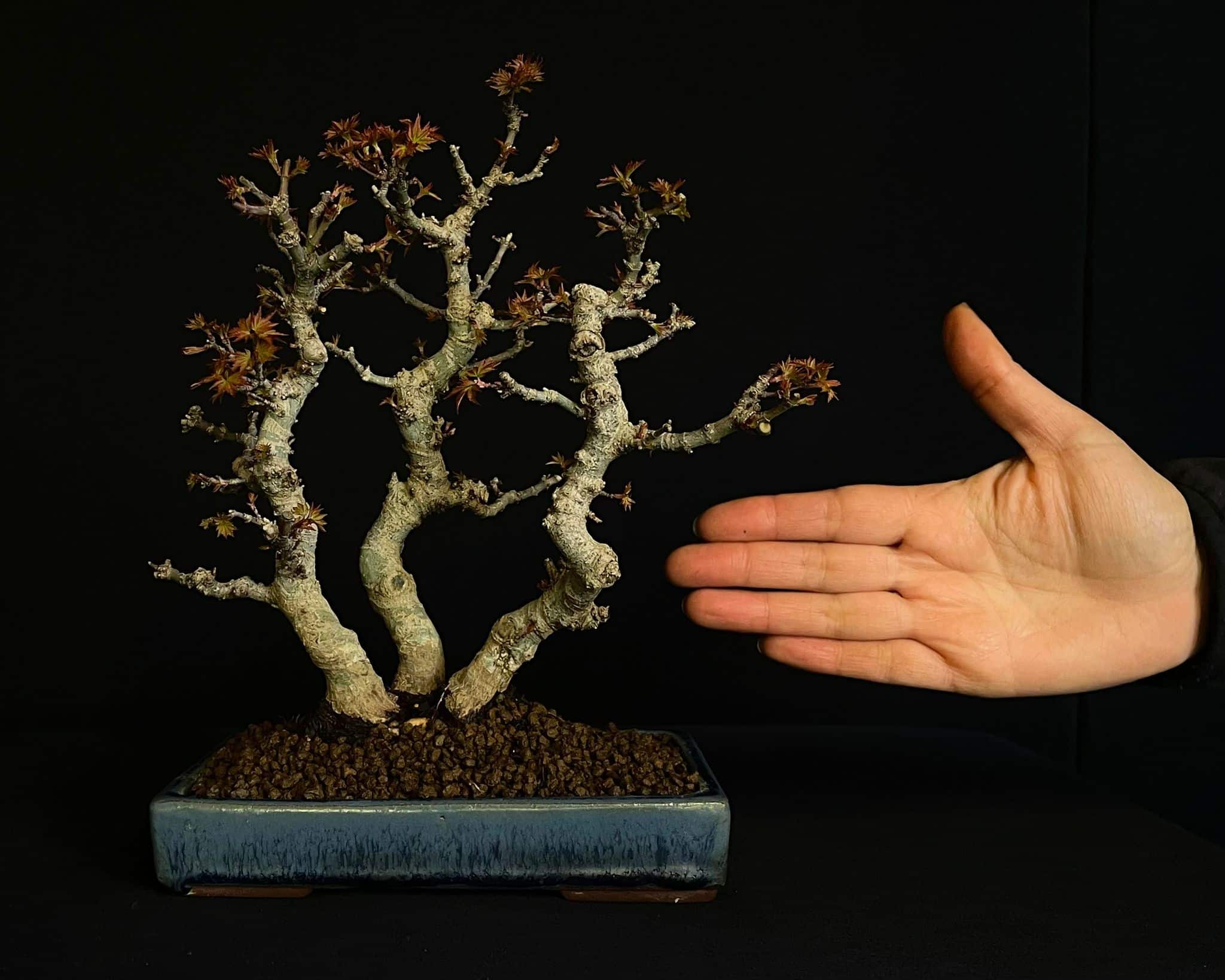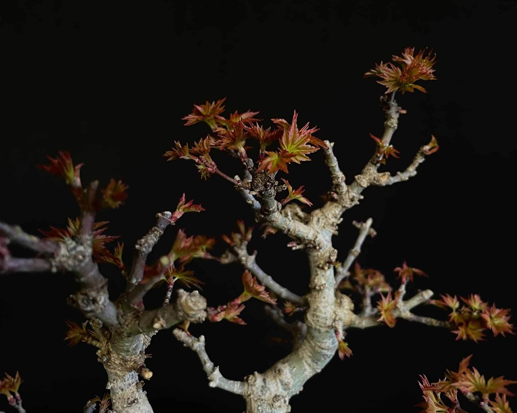 Es una variedad japonesa de porte extremadamente compacto, conocida por su crecimiento lento, entrenudos muy cortos y una ramificación fina que permite desarrollar estructuras altamente detalladas. Sus hojas, pequeñas y profundamente lobuladas, presentan una morfología ideal para trabajos de miniaturización y refinado avanzado.