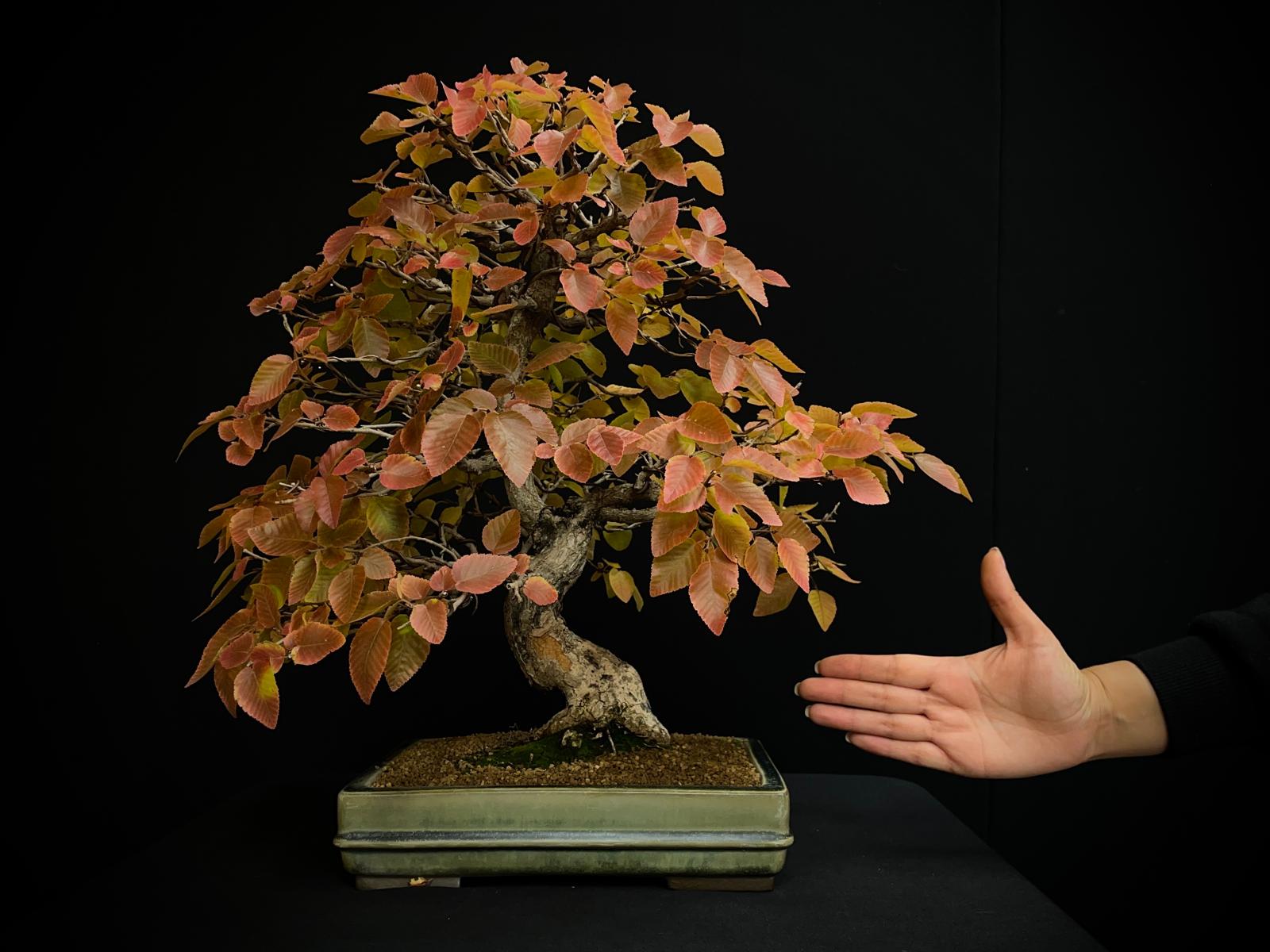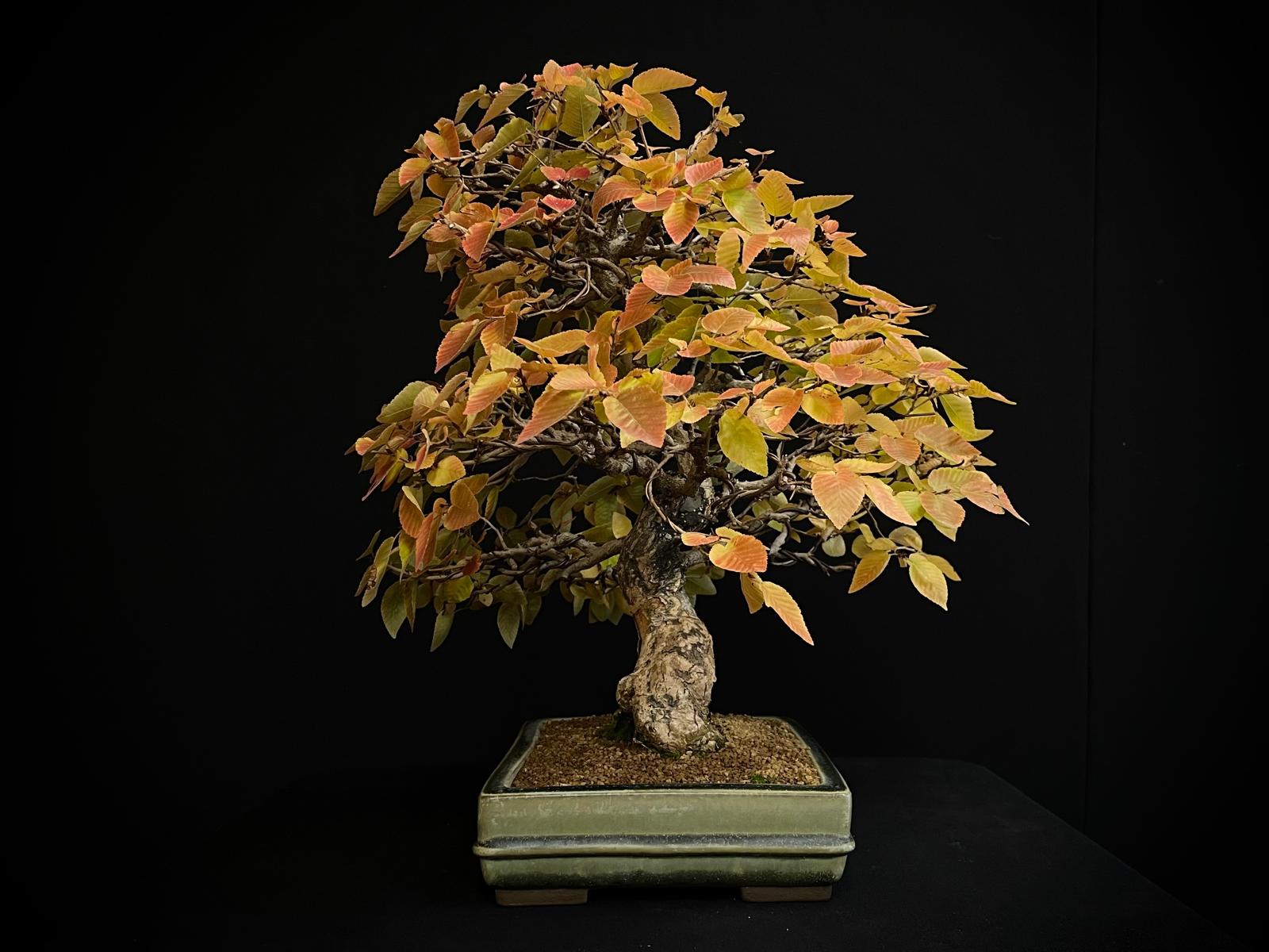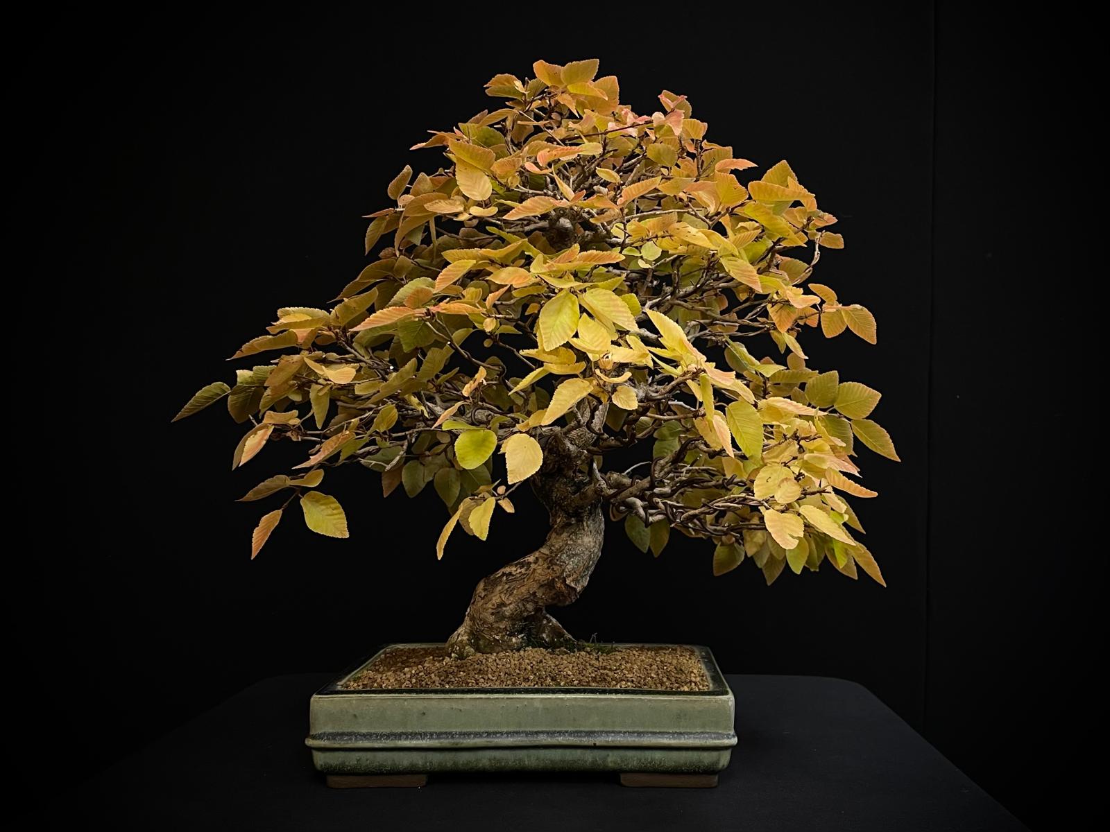 Bonsái Carpinus turczaninovii se distingue por sus hojas que cambian de color con las estaciones, ofreciendo un espectáculo visual impresionante. Su corteza lisa y grisácea se vuelve más rugosa con el tiempo, añadiendo carácter a su aspecto. Prefiere suelos bien drenados y una exposición parcial al sol para prosperar.