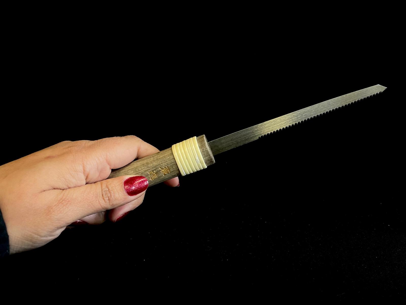 Es una herramienta japonesa de alta precisión diseñada para realizar cortes finos, controlados y extremadamente limpios. Gracias a su hoja estrecha y afilado profesional, permite trabajar con total exactitud en ramas gruesas, madera dura o zonas delicadas del bonsái donde otras sierras no llegan.