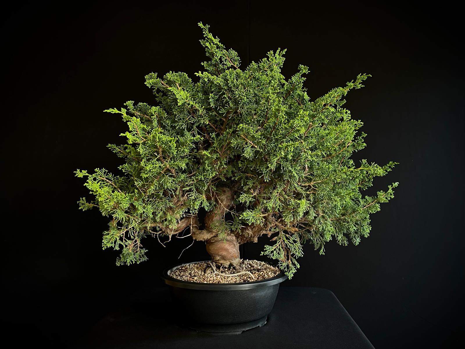 Juniperus Chinensis ‘Itoiwaga’, una joya del arte bonsái que combina estructura, armonía y presencia. Este ejemplar destaca por su forma compacta y su follaje verde intenso, ideal para coleccionistas y amantes del diseño natural.