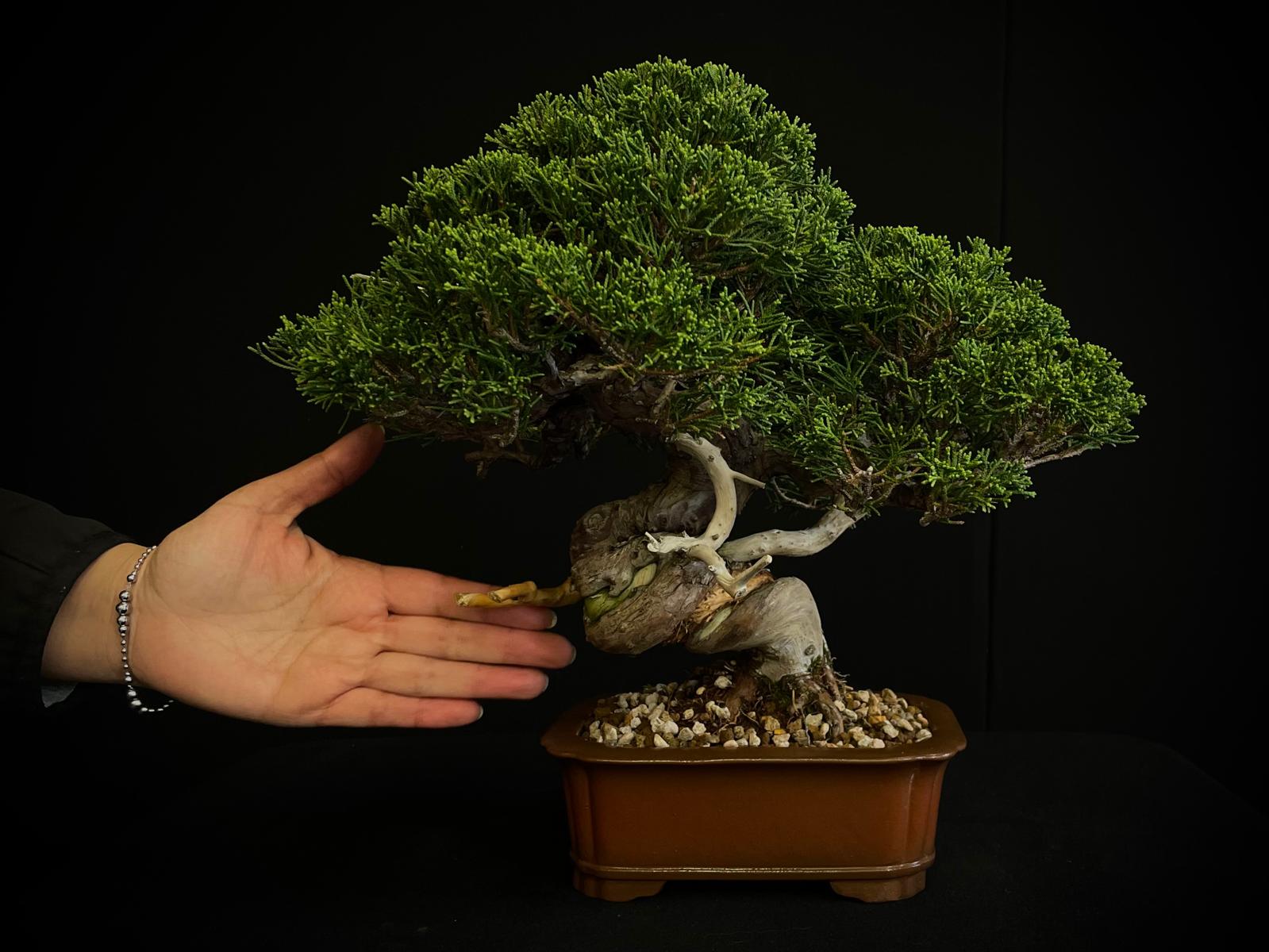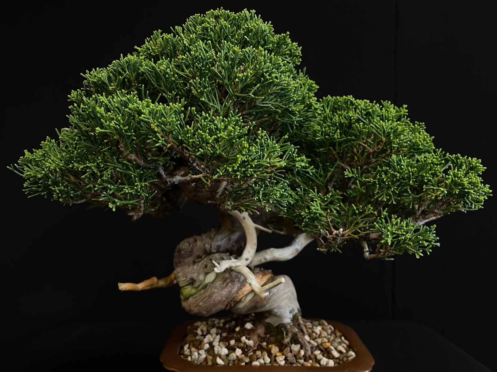 Juniperus Chinensis ‘Itoiwaga’, una variedad de enebro chino que destaca por su estructura compacta, follaje denso y estética refinada. Este ejemplar es perfecto para coleccionistas exigentes y amantes del bonsái que buscan una pieza con personalidad y equilibrio visual.