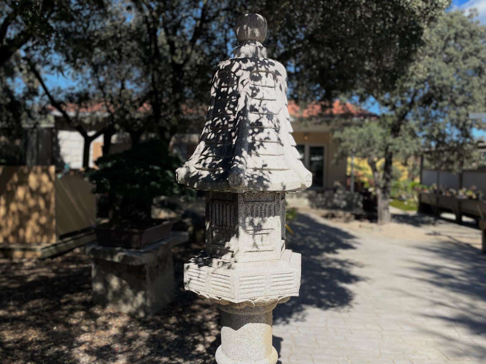 Su estructura tradicional, con base robusta y cámara central para la luz, convierte a esta linterna en un elemento perfecto para jardines zen, senderos, estanques y espacios de meditación. Además de su función ornamental, simboliza la iluminación espiritual y la conexión con la naturaleza, valores esenciales del paisajismo japonés.