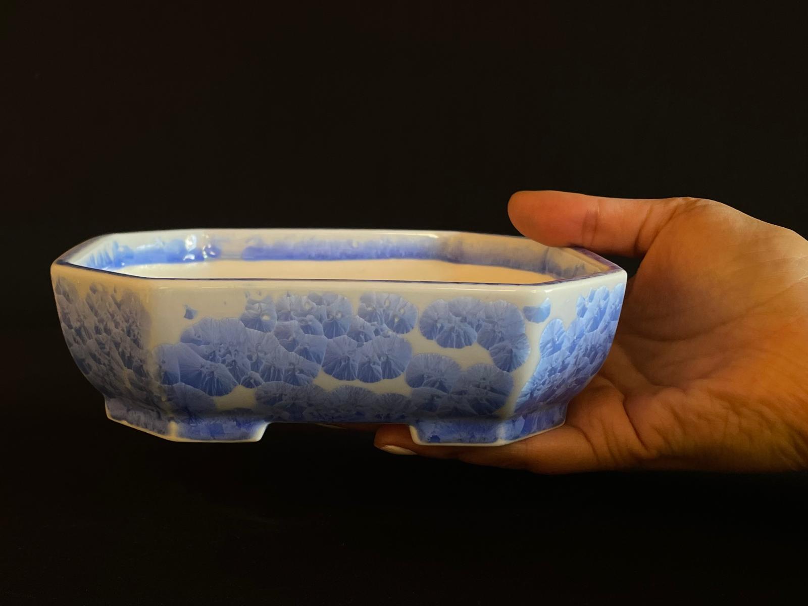 Es una pieza de cerámica japonesa que fusiona la precisión geométrica con la elegancia del esmalte artesanal. Su forma aporta dinamismo visual y equilibrio, mientras que el acabado esmaltado realza cada detalle con profundidad y brillo. Creada por el maestro ceramista Kinbon, esta maceta es perfecta para bonsáis que merecen una presentación única y sofisticada.