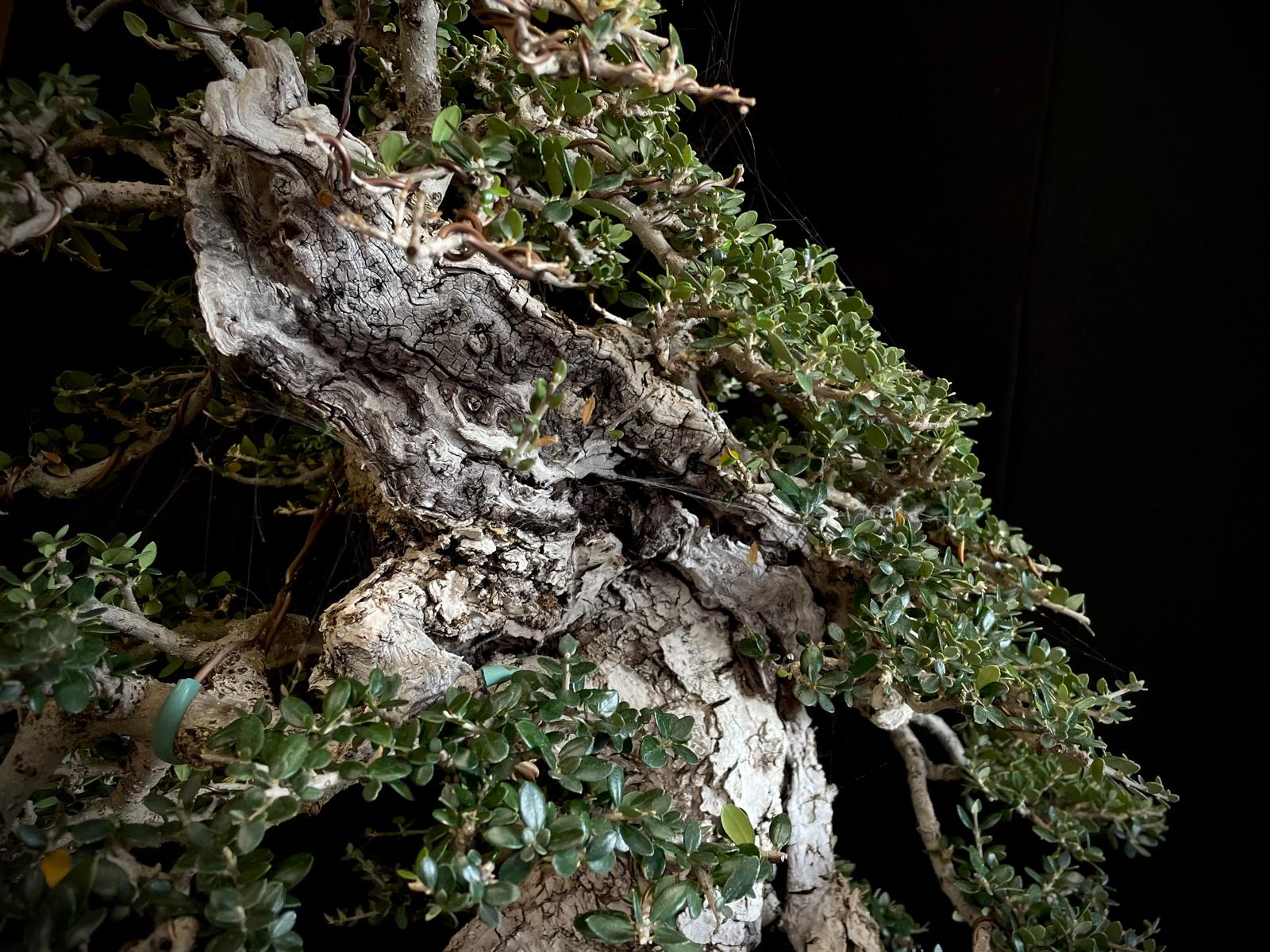 Este bonsái de Olea europea sylvestris es una joya para cualquier amante de los bonsáis.
