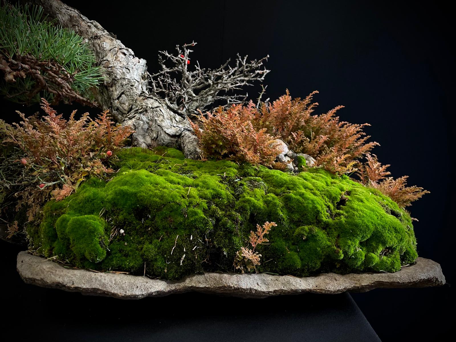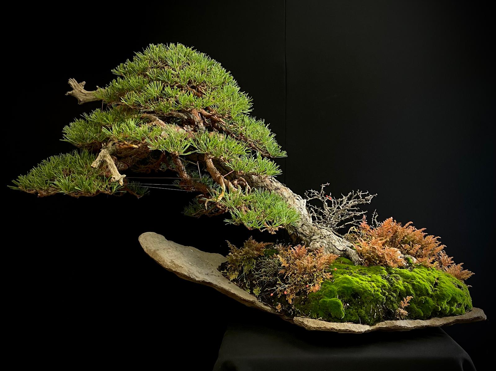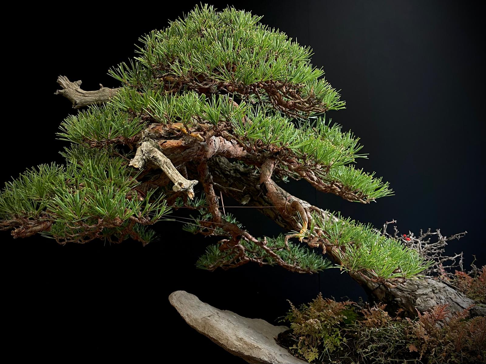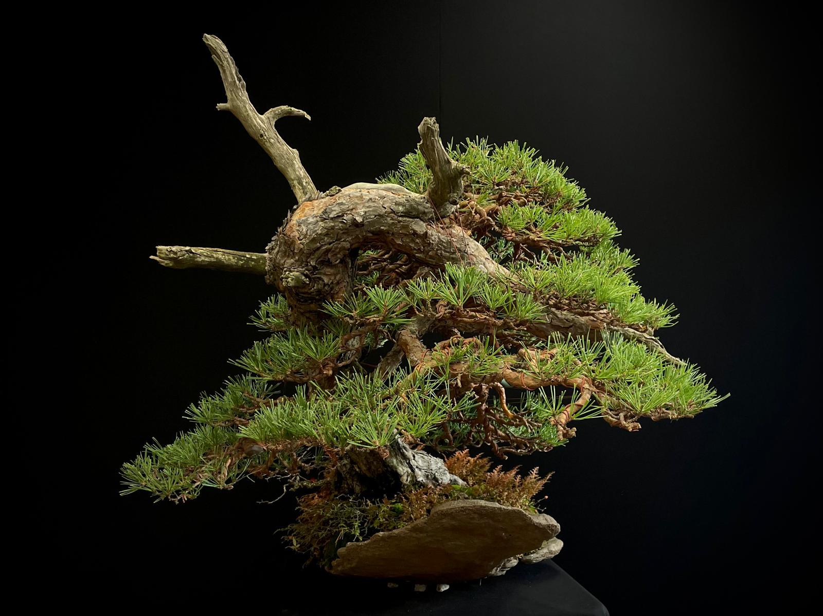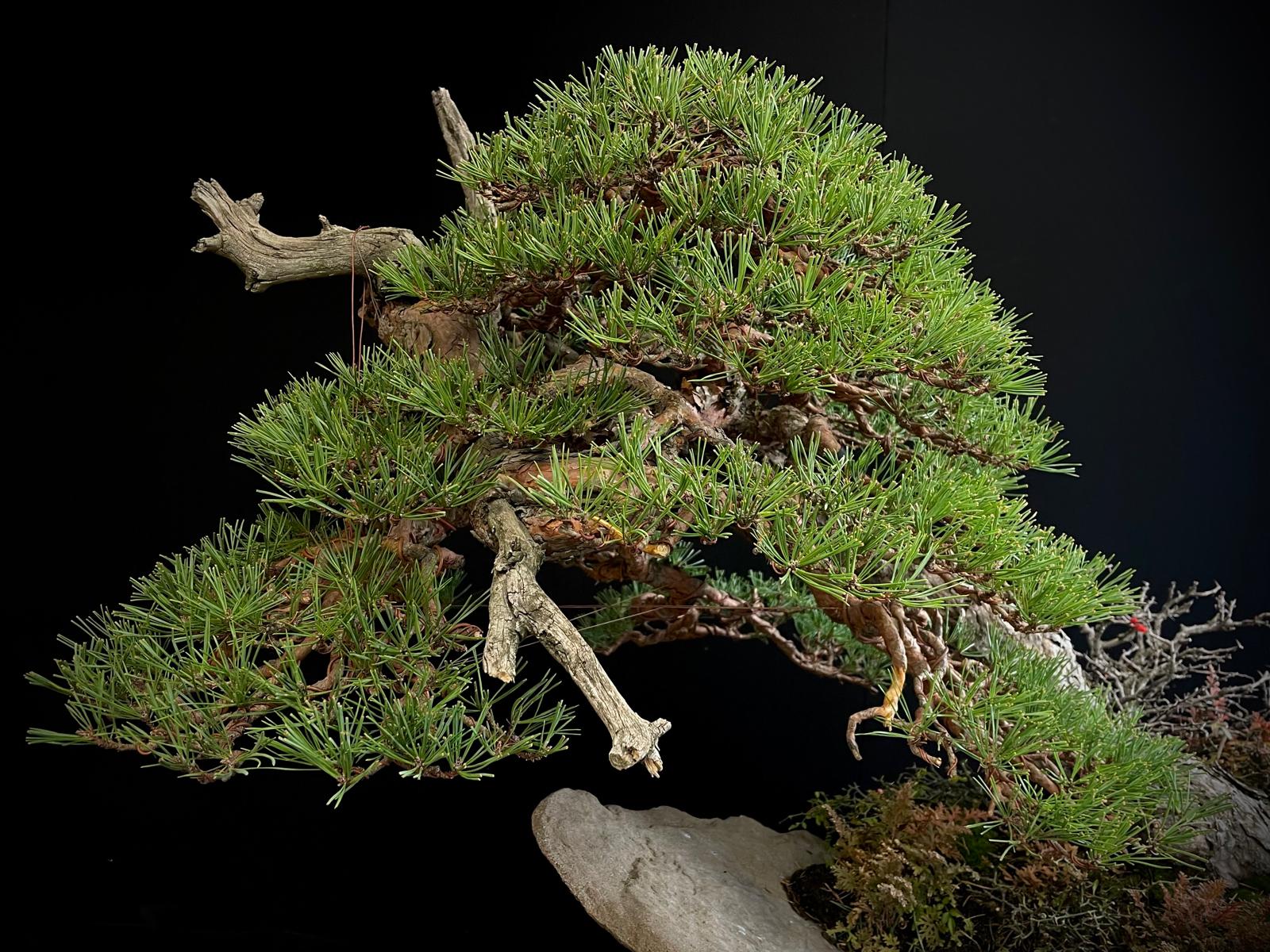 Este bonsái requiere luz solar directa y riego moderado, evitando el encharcamiento para mantener su salud y vitalidad.