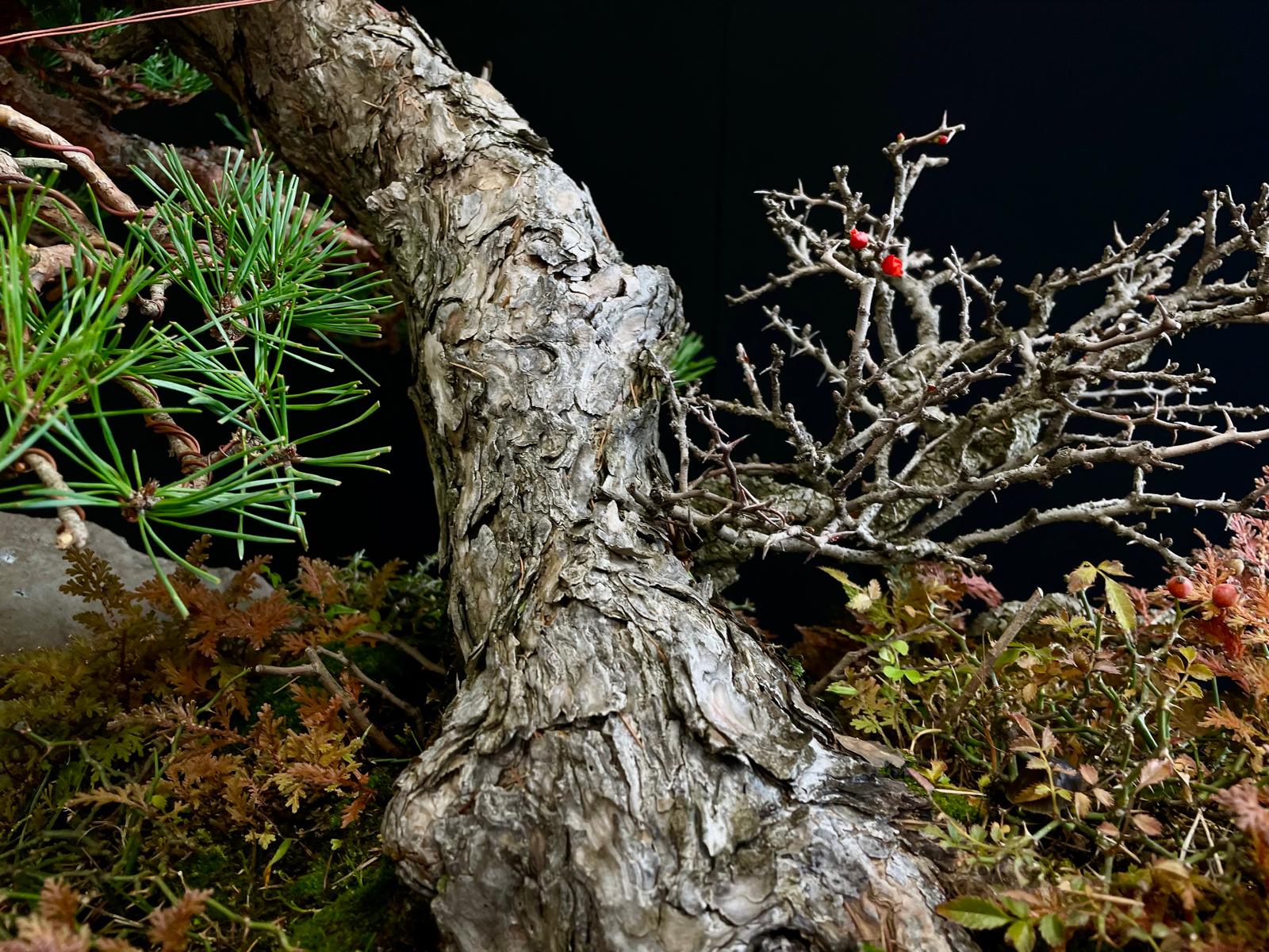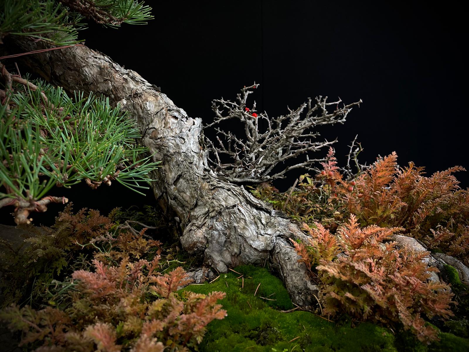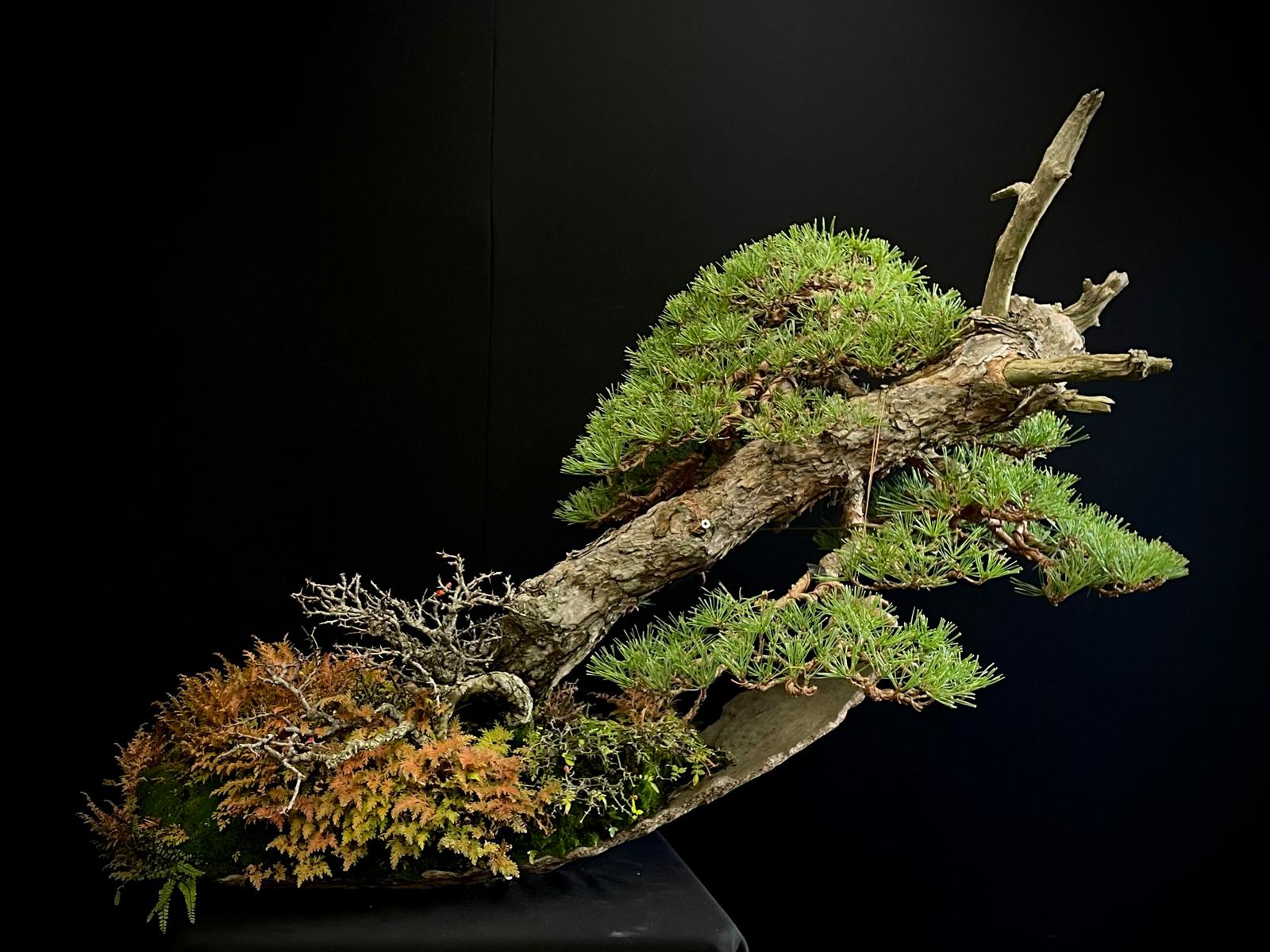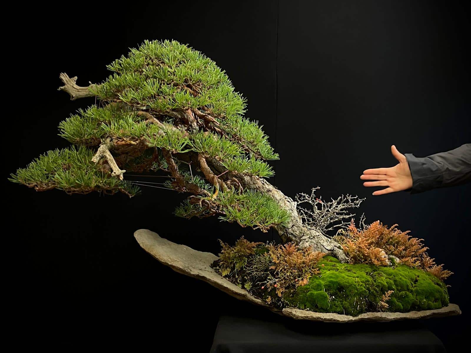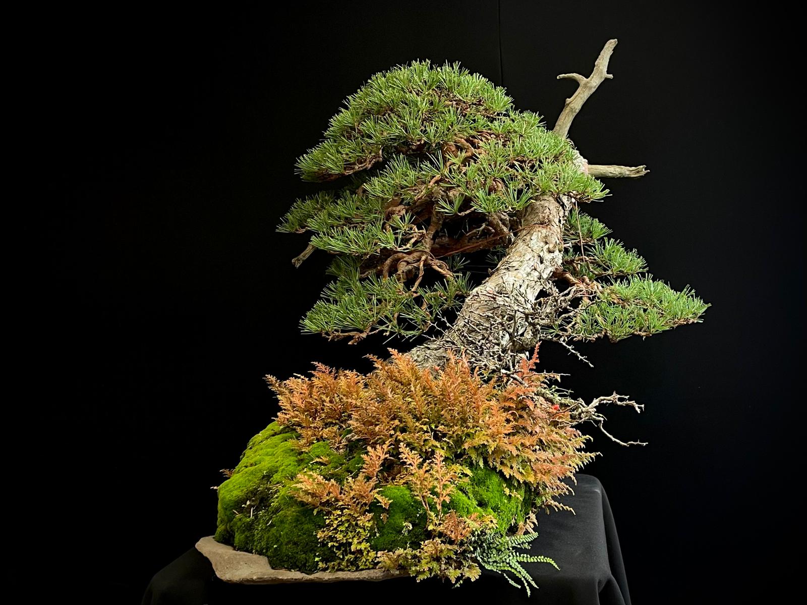 Este bonsái requiere luz solar directa y riego moderado, evitando el encharcamiento para mantener su salud y vitalidad.