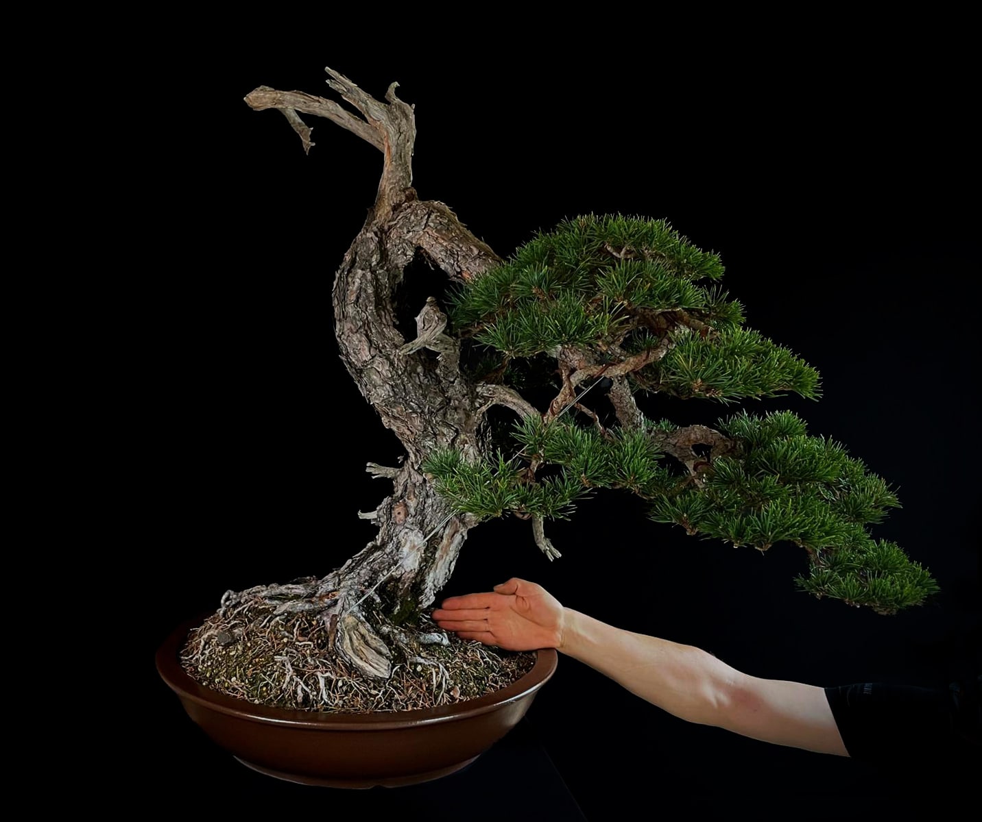 Una joya en el arte del bonsái que captura la majestuosidad del pino silvestre en una forma compacta y elegante. Con su corteza característica y sus acículas verde azuladas, este bonsái es una adición impresionante a cualquier colección.