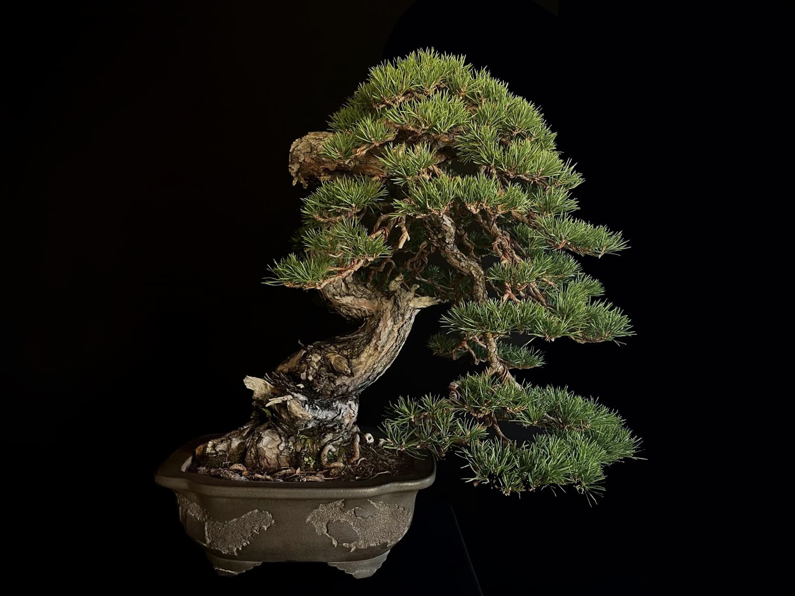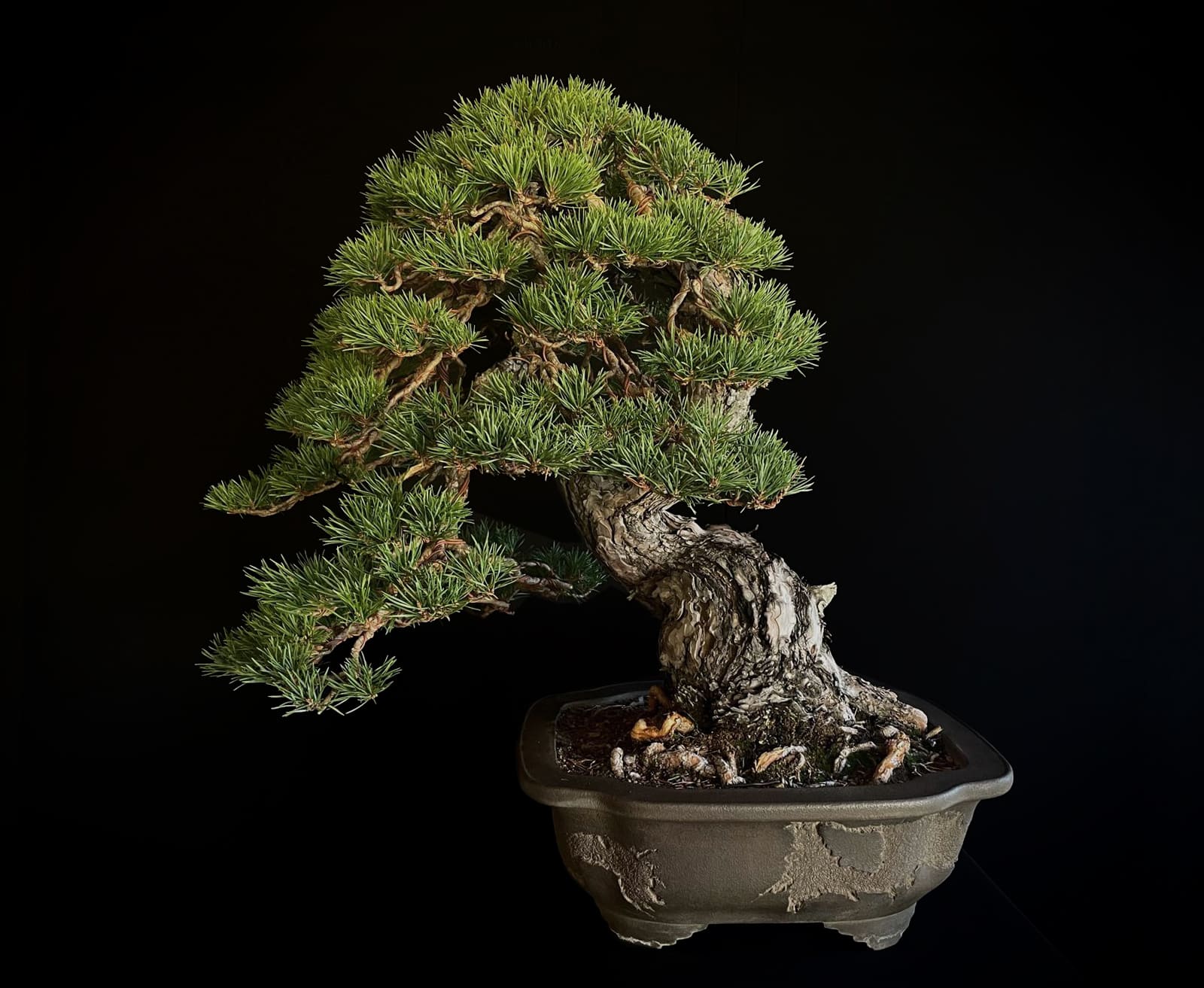 Una joya en el arte del bonsái que captura la majestuosidad del pino silvestre en una forma compacta y elegante. Con su corteza característica y sus acículas verde azuladas, este bonsái es una adición impresionante a cualquier colección.