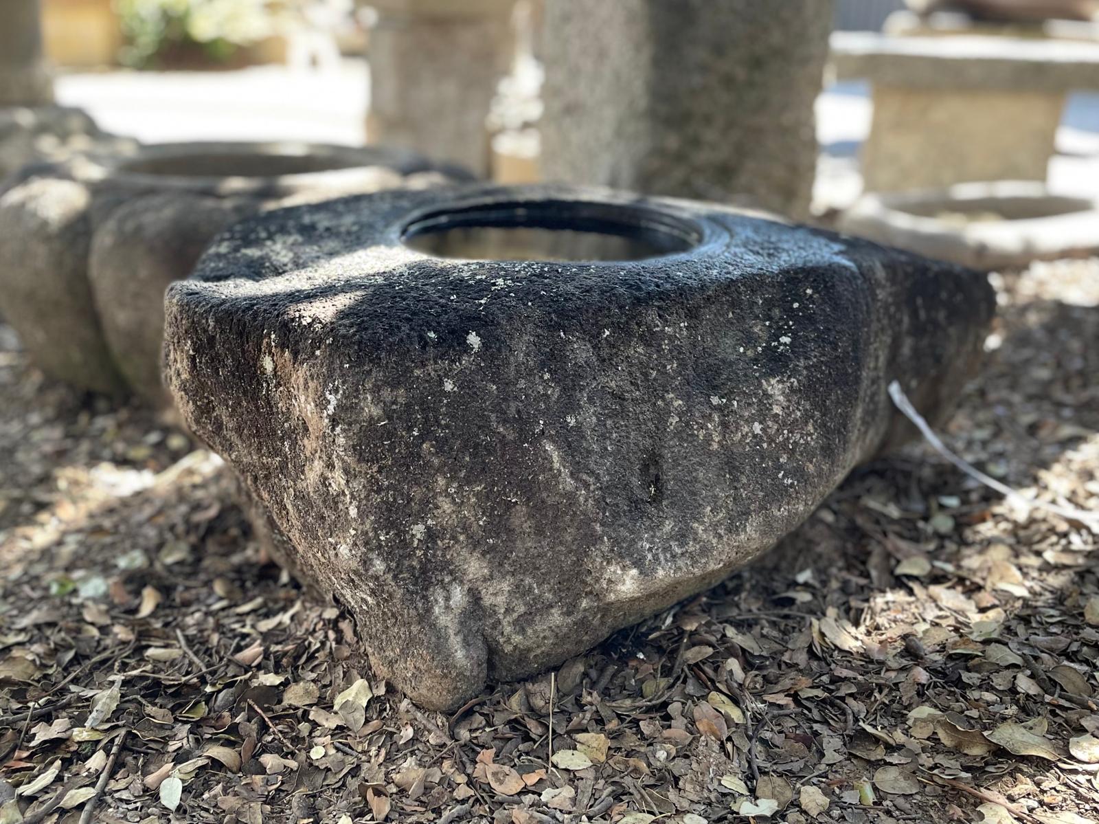 Su textura envejecida, las formas orgánicas y la presencia del agua crean un ambiente de calma ideal para jardines zen, patios exteriores o espacios dedicados a la meditación.