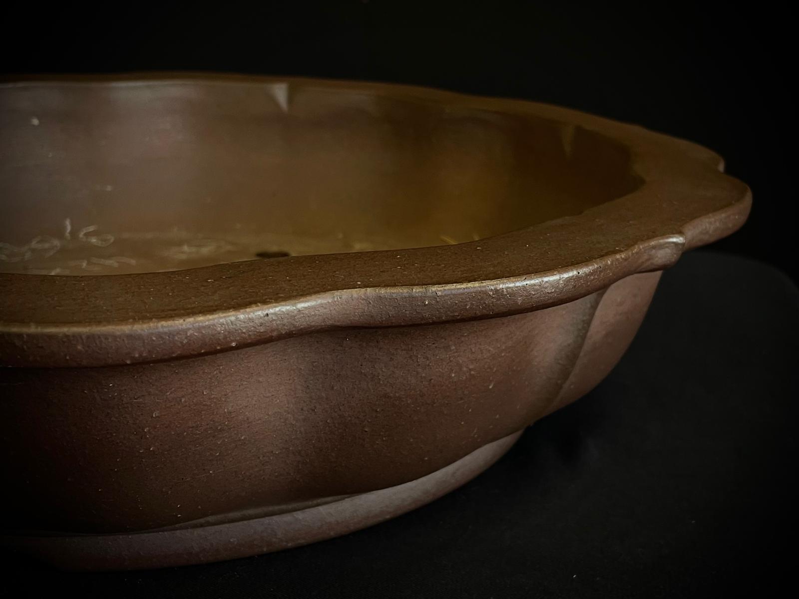 MACETA YAMAAKI FLOR SIN ESMALTAR, una obra maestra de la artesanía japonesa. Fabricada en Tokoname, Japón, esta maceta es ideal para bonsáis, combinando tradición y funcionalidad.