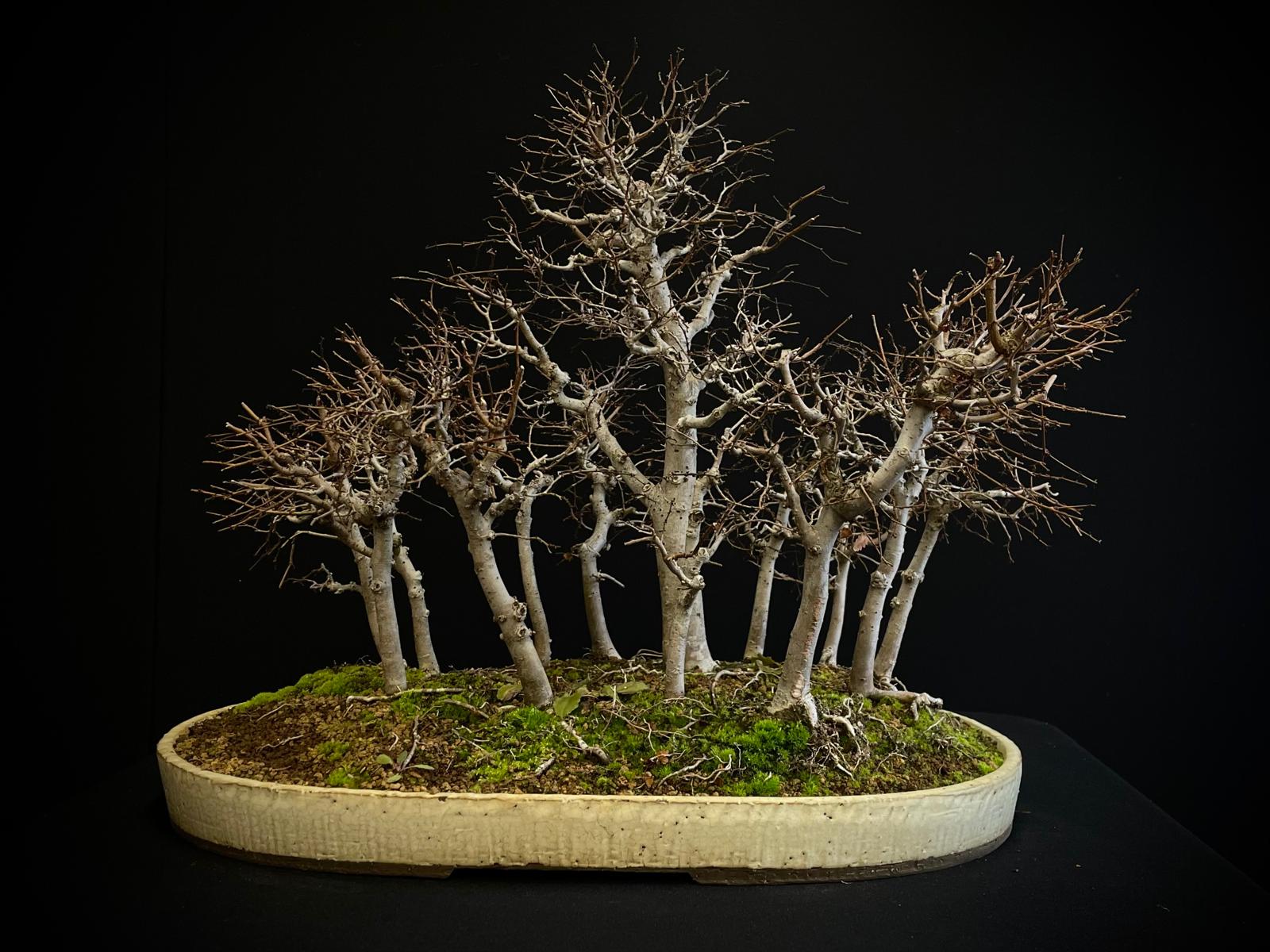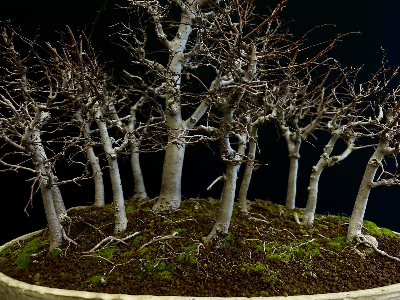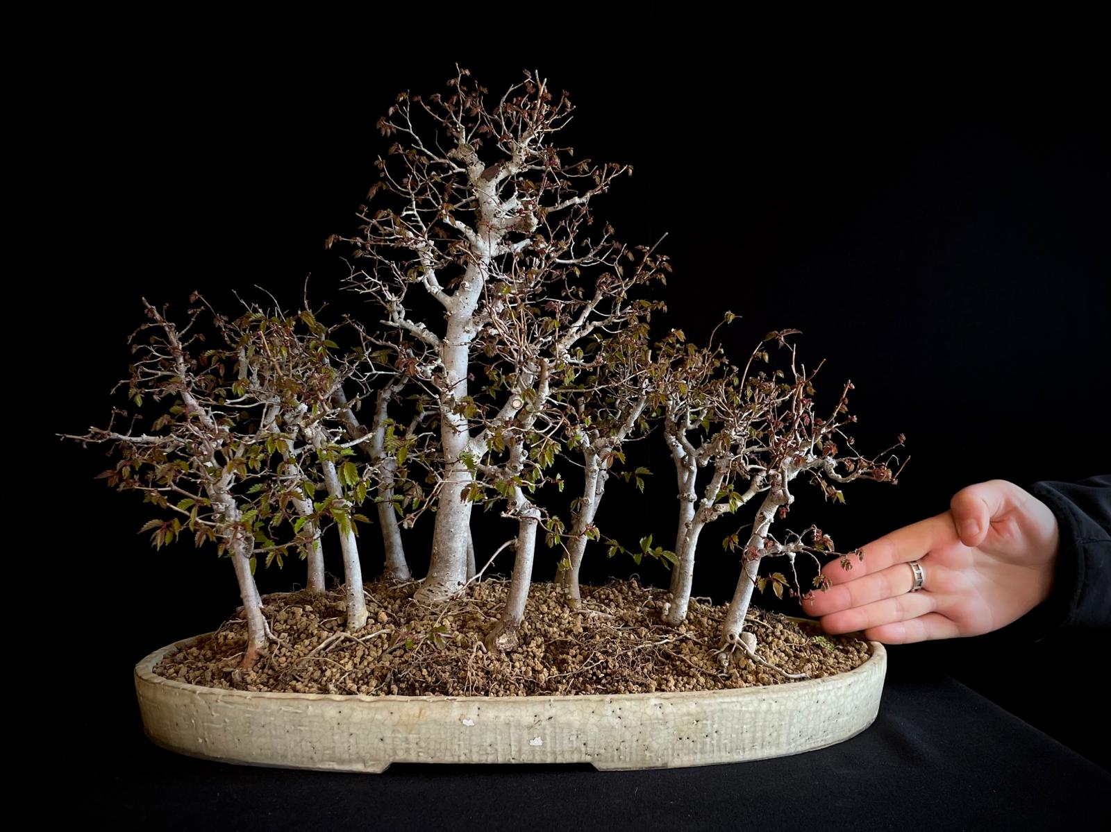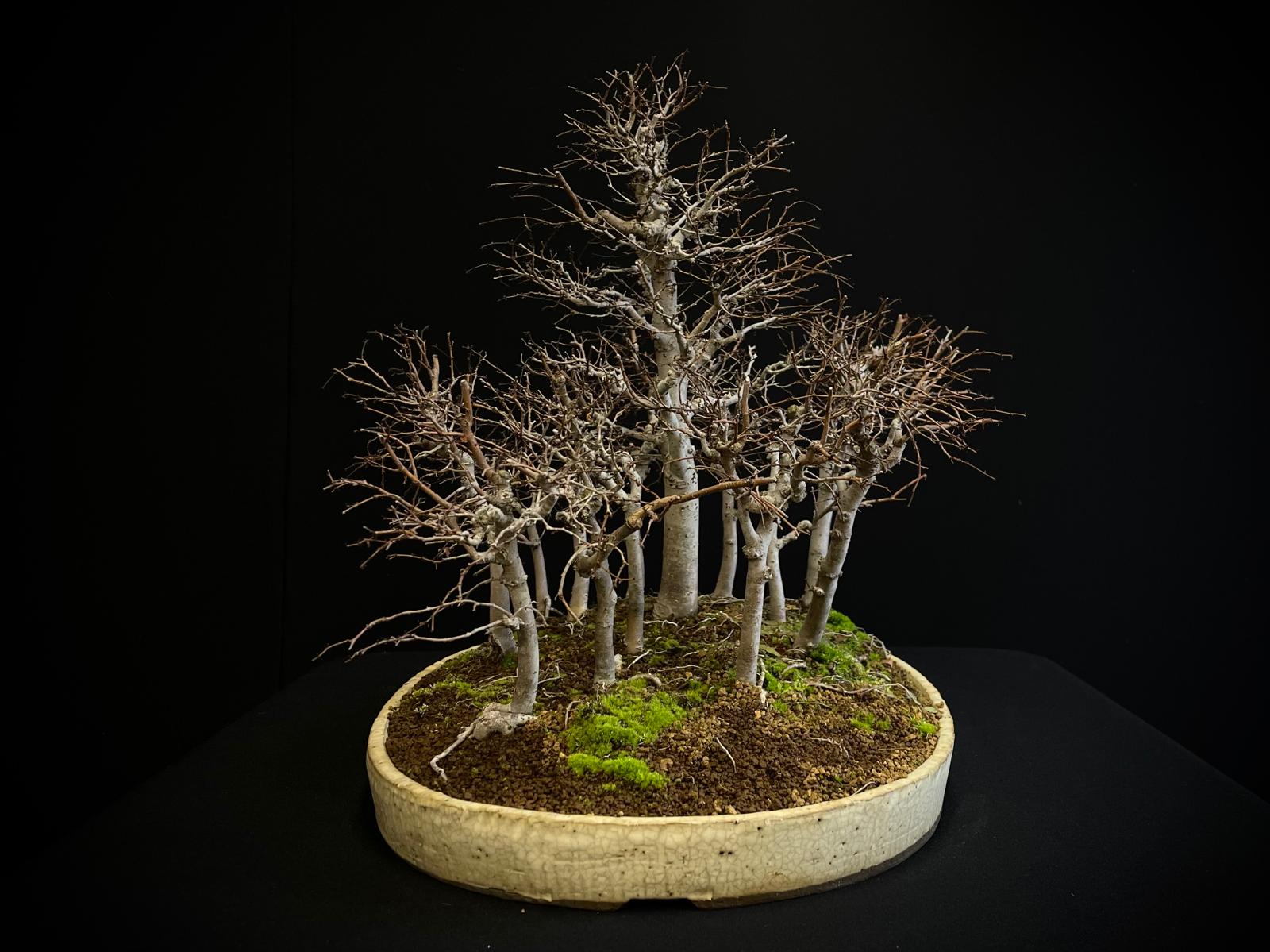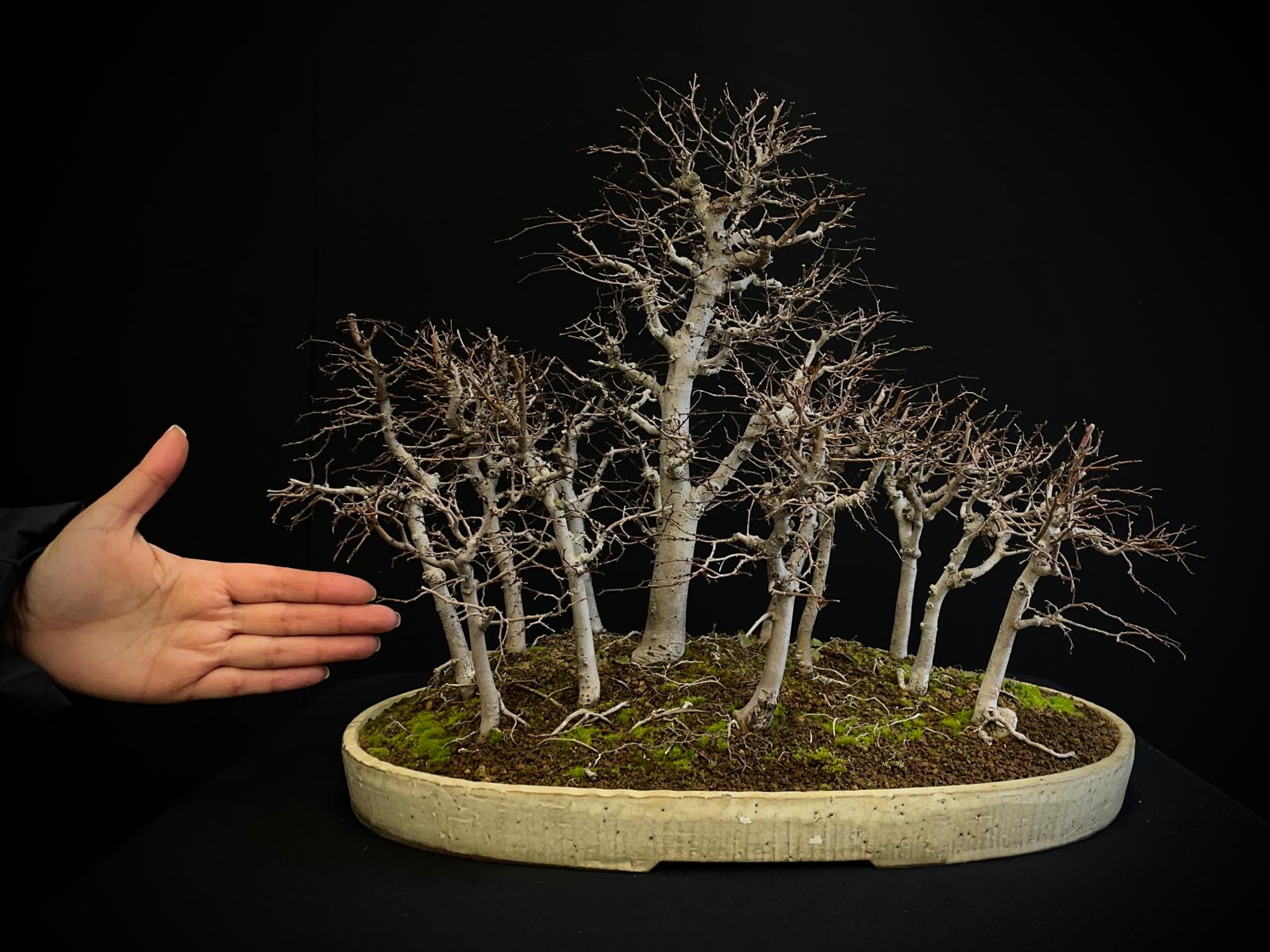 Una joya botánica que combina estructura, equilibrio y carácter en cada rama. Este ejemplar destaca por su diseño armonioso de múltiples troncos, evocando la estética de los bosques japoneses en miniatura.