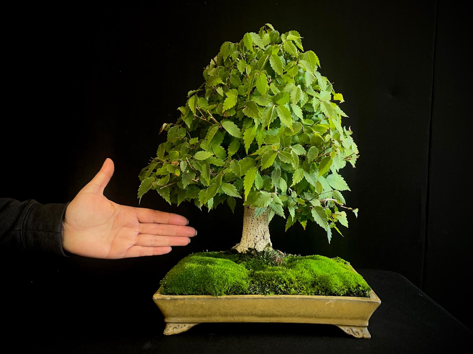 El Zelkova serrata 24I DI-9 es un árbol caducifolio perteneciente a la familia Ulmaceae, reconocido por su atractiva corteza y sus pequeñas hojas. Este ejemplar es altamente valorado en el arte del bonsái, gracias a su follaje denso y su distintiva corteza. Sus dimensiones son de 32*36*34, lo que lo hace adecuado para espacios reducidos y jardines decorativos.