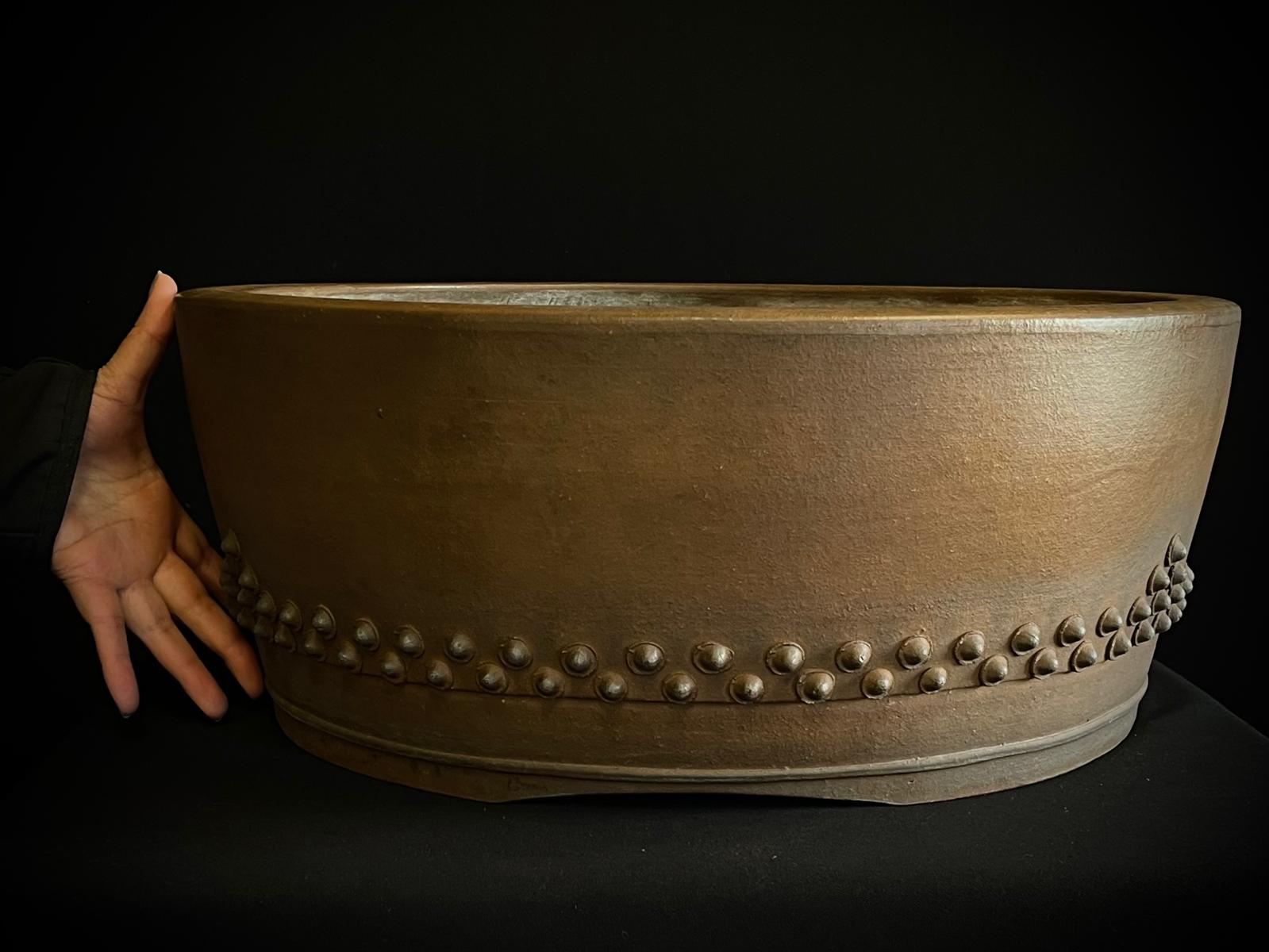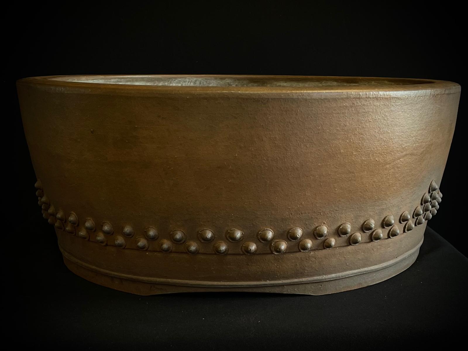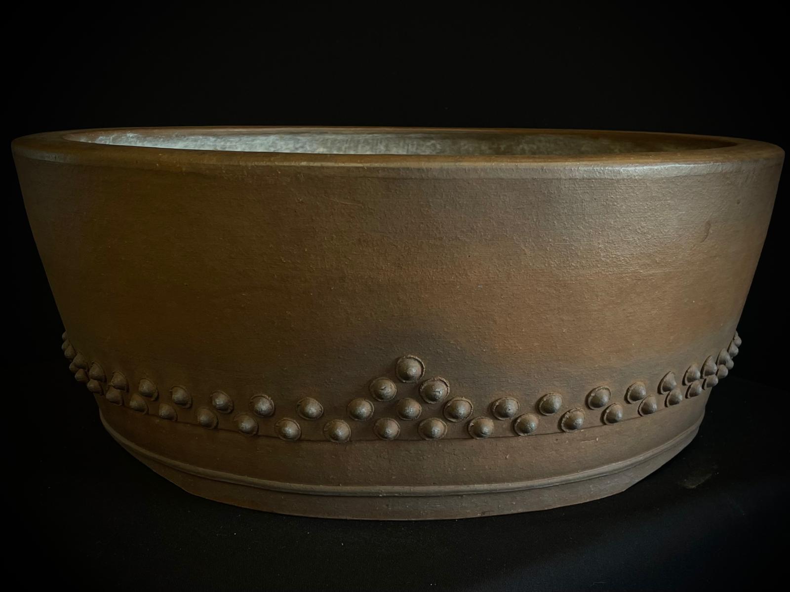 Maceta Zenigo Matshuyama redonda sin esmaltar, diseño tambor,